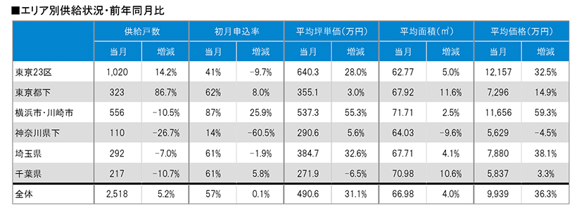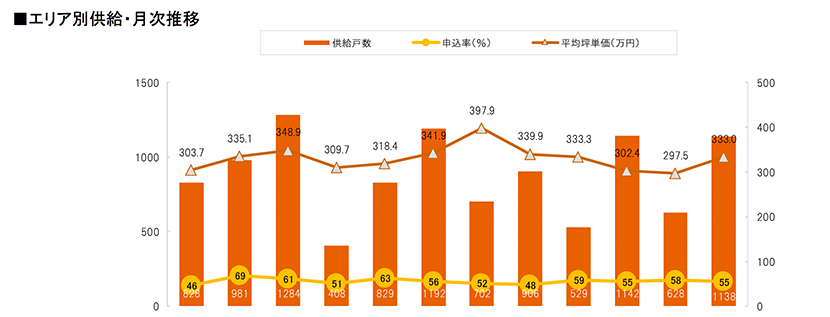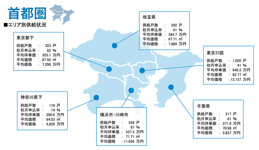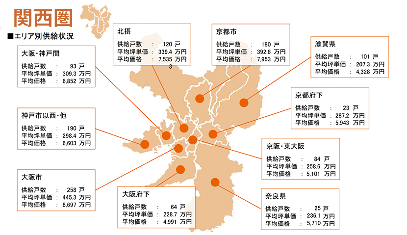 集計対象エリアは首都圏及び関西圏で、それぞれのエリア別相場情報、需給動向、着工件数等を集計しました。