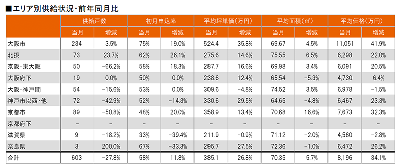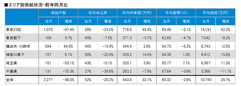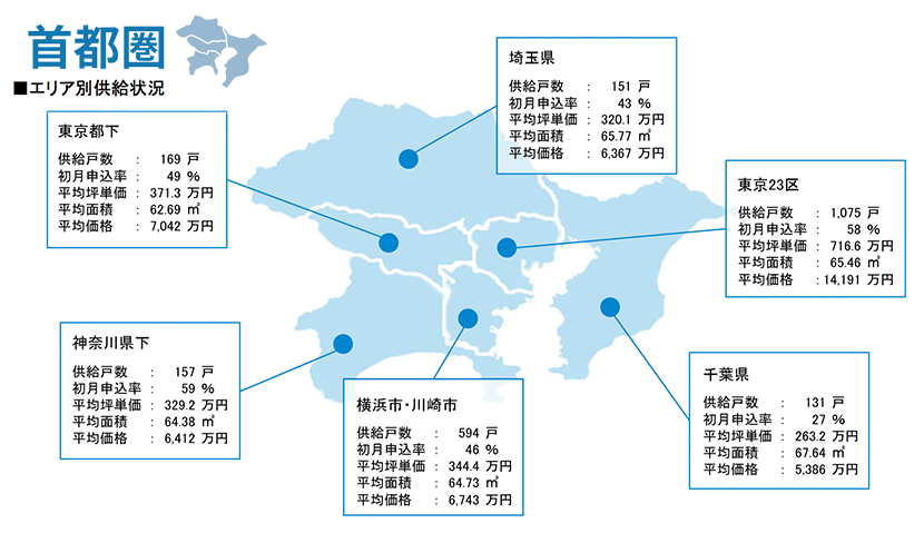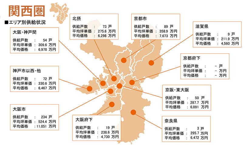 集計対象エリアは首都圏及び関西圏で、それぞれのエリア別相場情報、需給動向、着工件数等を集計しました。