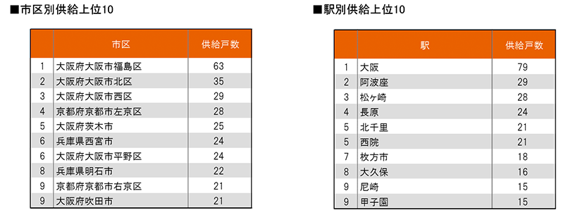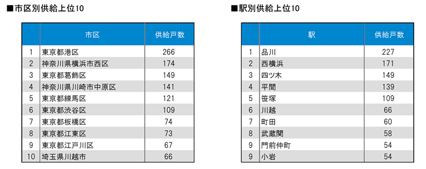 また、市区別、駅別の供給ランキング等も算出しました。